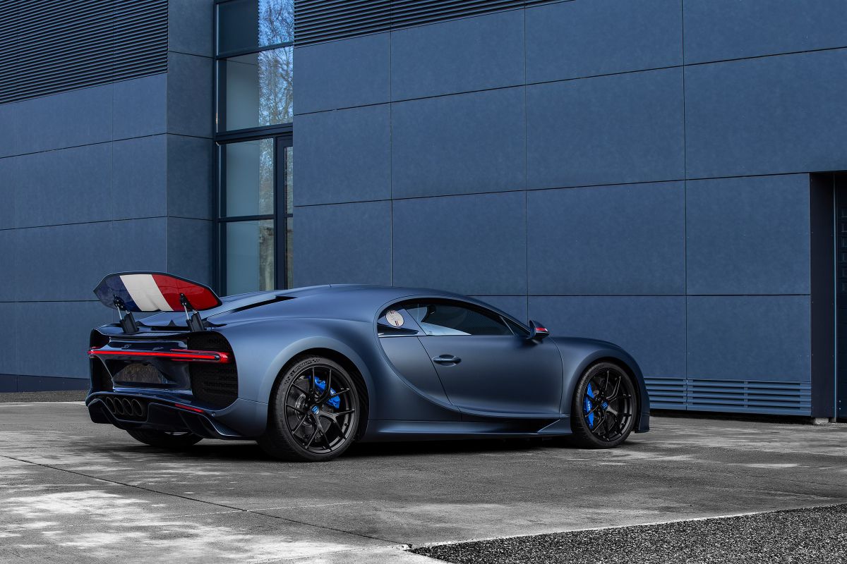 Francuska trobojka na donjoj strani spojlera je najuočljiviji detalj i predstavlja posvetu zemlji iz koje marka potiče. Specijalna serija biće ofarbana u čelično plavu boju sa mat finišem sve do C stuba i obuhvata segment koji je obično ofarban u neku drugu boju. To znači da će ova serija Chirona biti unikatna po jednobojnoj karoseriji.