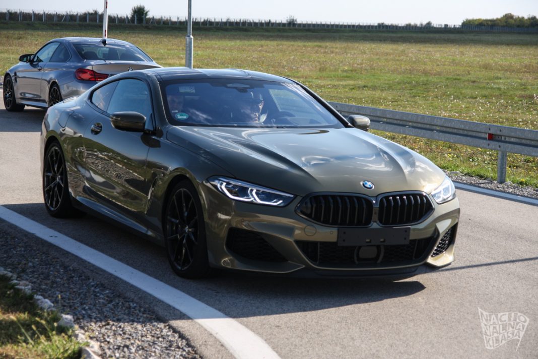 Nakon toga smo se prebacili u podjednako zanimljivu opciju – BMW 850M koji je takođe „pucao“ od snage sa 530 KS na dohvat desne noge. Grand Hotel, pardon Gran Coupe karoserija uparena sa V8 twin turbo motorom, automatskim menjačem i xDrive pogonom nudi izuzetne performanse koje su prilično dobro maskirane udobnim sedištima i odličnom izolacijom. Bugarski instruktor je takođe vozio 850M, a kao što možete videti/čuti, naglašava da se xDrive automobili voze malo drugačije kako bi se u potpunosti iskoristio potencijal koji imaju, a minimizovao hendikep težine.