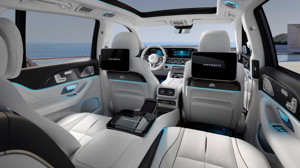 U kabini, Mercedes-Maybach GLS, koji je dugačak 5202mm, dobio je unapređen enterijer sa napa kožom i jedinstvenim trimom. Na dugoj listi dodatne opreme su zadnja sedišta na razvlačenje i funkcijom masaže, fiksirana centralna konzola sa sklopivim stolovima i frižiderom u konfiguraciji sa četiri sedišta i panoramski krov. Kapacitet prtljažnika je 520 litara.