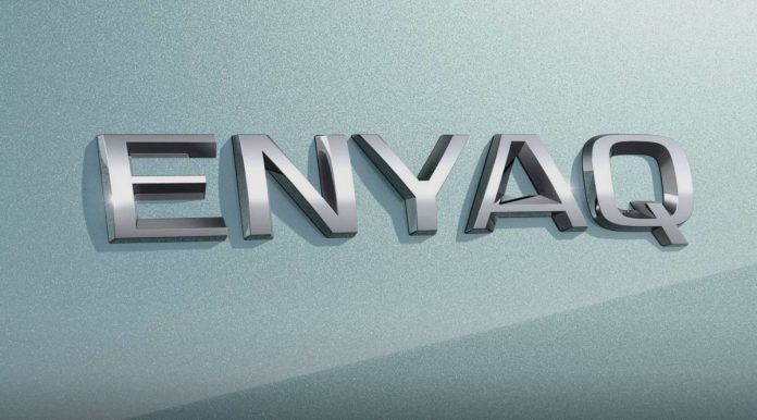 Škoda je saopštila da ime Enyaq kombinuje irsko žensko ime Enya i slovo Q, koje se nalazi na kraju imena ostalih SUV modela ove marke: Kodiaq, Karoq i Kamiq. E je, takođe, referenca na električnu mobilnost.