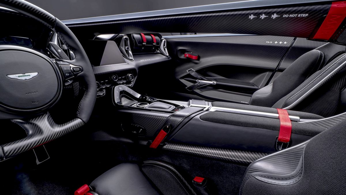 Kabina je obložena kombinacijom kože i karbonskih vlakana, sa aluminijumskim i hromiranim elementima, a ponegde je uoptrebljena i guma sa 3D printom. Ispred putnika se nalazi kožna torba koja se može ukloniti i to je alternativa tradicionalnoj ladici.